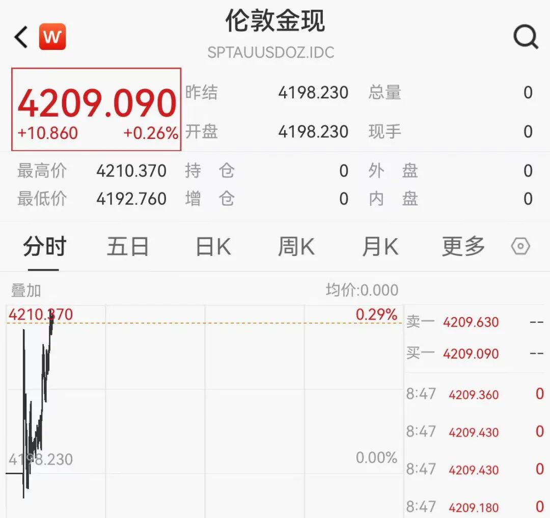 现货黄金坚守4200美元上方,现货白银上涨0.43%至58.544美元/盎司。